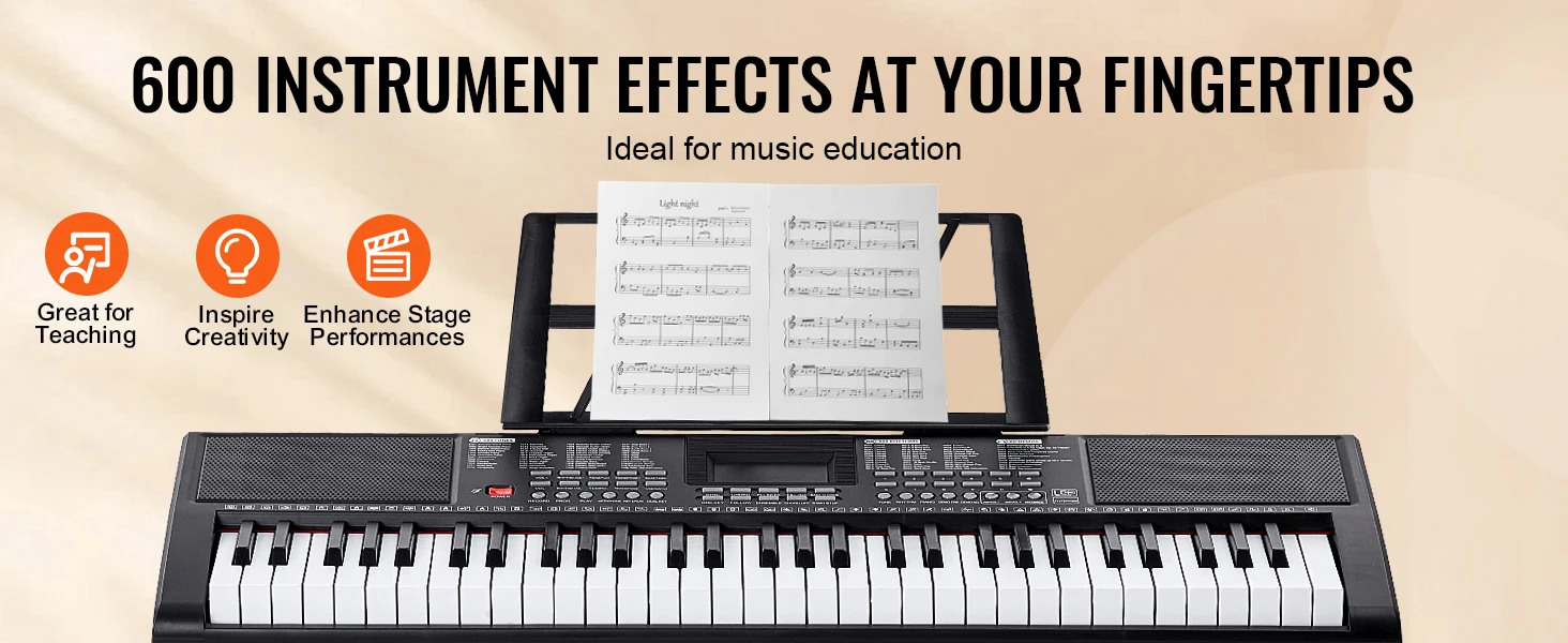 • With Stand——Unlock 600 standard tones, 500 international rhythms, and 80 demo songs with this electric keyboard piano. Explore a wide range of instrument sounds and musical styles, making it an excellent tool for teaching and discovering new genres. Ideal for both learning and creativity