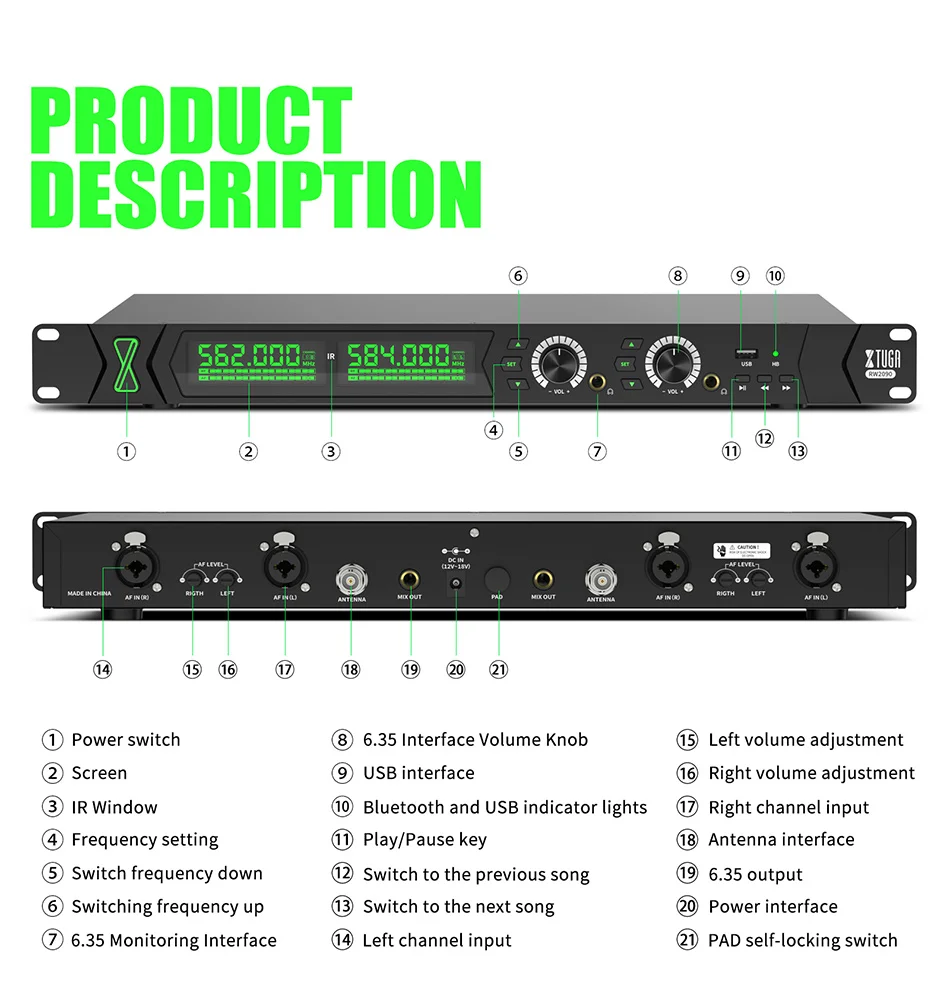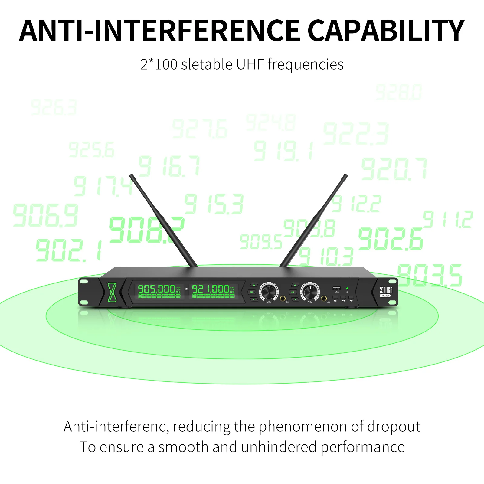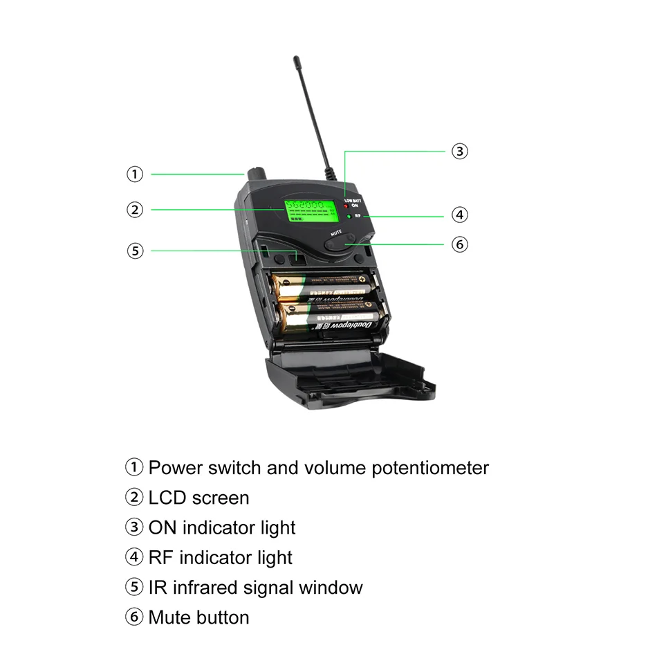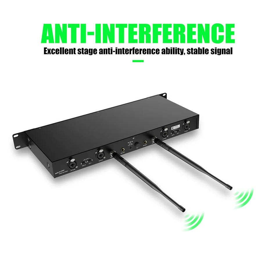 UHF WIRELESS IN EAR MONITOR SYSTEM: UHF band Phase lock PLL, improved comprehensive performance, anti-frequency drop, anti-series frequency. Frequency range: 550.1-599.85 Mhz. It is preset with two sets of signal channels, totaling 200 frequencies. Adopting high-frequency transmission technology, it has good anti-interference and stability, improves signal-to-noise ratio and dynamic range, making the output sound source closer to the original sound.