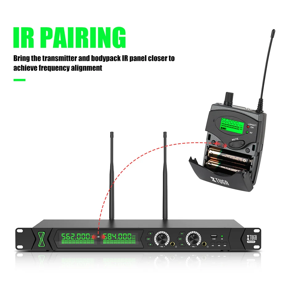 EASY TO USE: 2090 wireless in-ear monitoring system uses infrared frequency matching. In addition, Bluetooth/USB connection is also supported. The receiver has a one-click mute function for easier use. ( USB connection only supports reading MP3 format. )